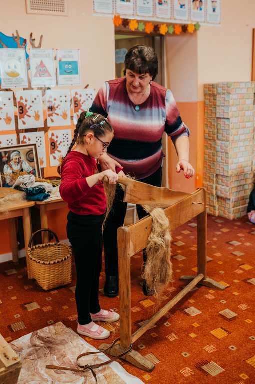 Tentokrát prišla aj so svojou dcérou Jarkou, priniesli množstvo rekvizít a fotografií a deti si mohli vyskúšať , ako sa kedysi priadlo, rajbalo či maslo mútilo. Jarmilka nám predviedla batizovský kroj a keďže naša pani učiteľka Nikolka pochádza z Vernára, aj ona prišla do práce odetá v kroji, aby deti spoznali, že každá obec má svoje vlastné typické prvky na krojoch.